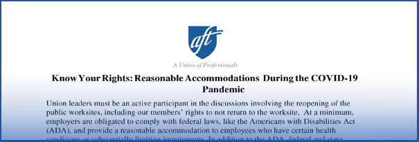 AFT Health Issues has several resources for public employees during COVID-19. Follow the links below to open these helpful information sheets.