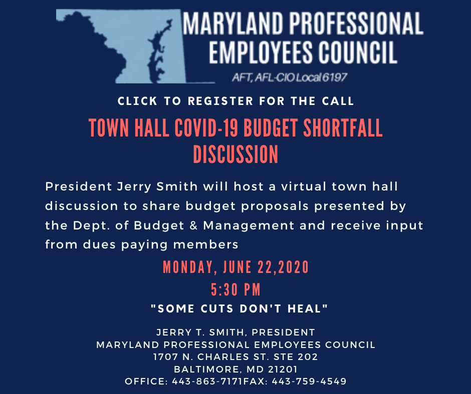 In yesterday’s Budget Shortfall Town Hall discussion, 265 participants joined the call. We announced a call to action for members to a) contact the Board of Public Works b) RSVP for the rally/caravan on June 30th, and c) send a letter to Senators for the HEROES ACT.
