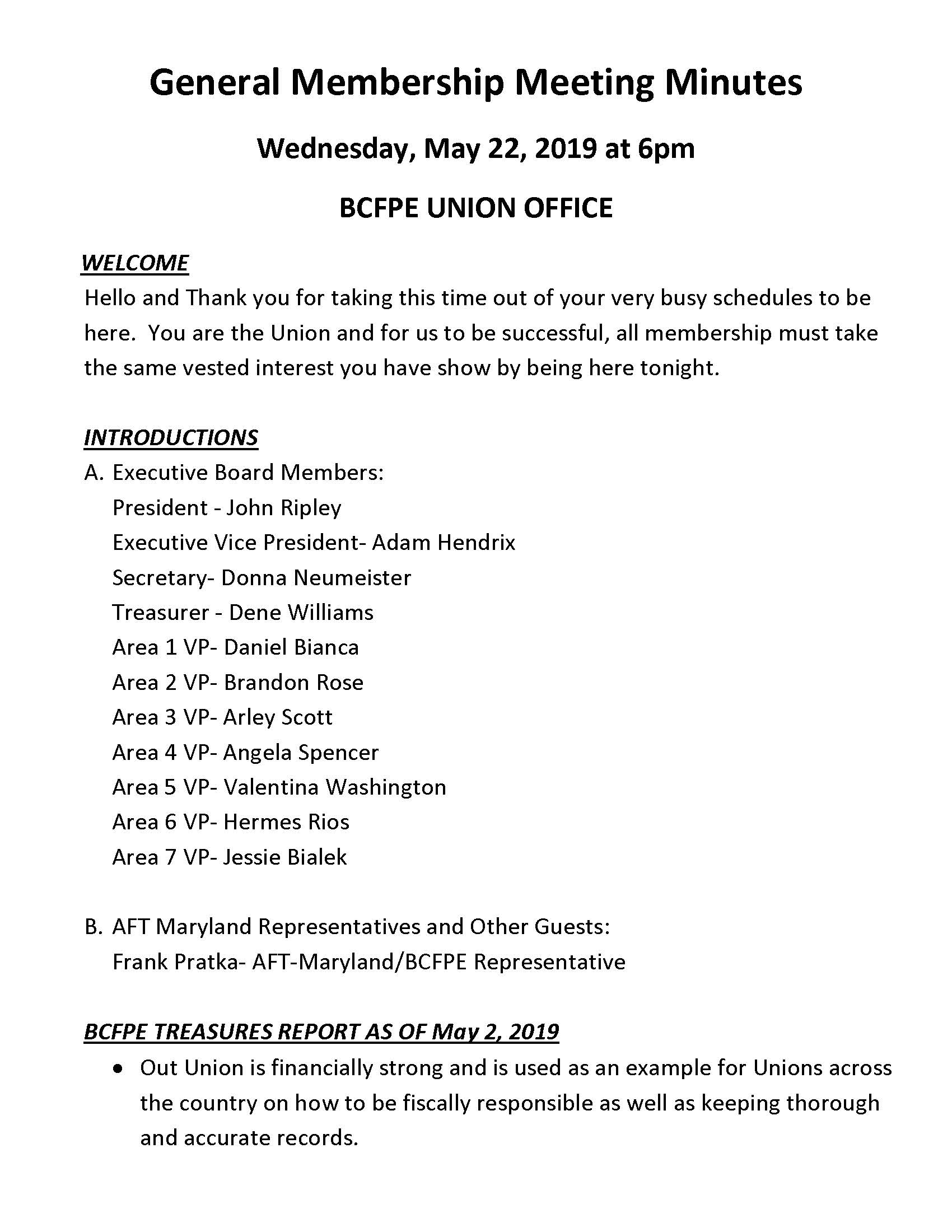 General Membership Meeting, May 22, 2019