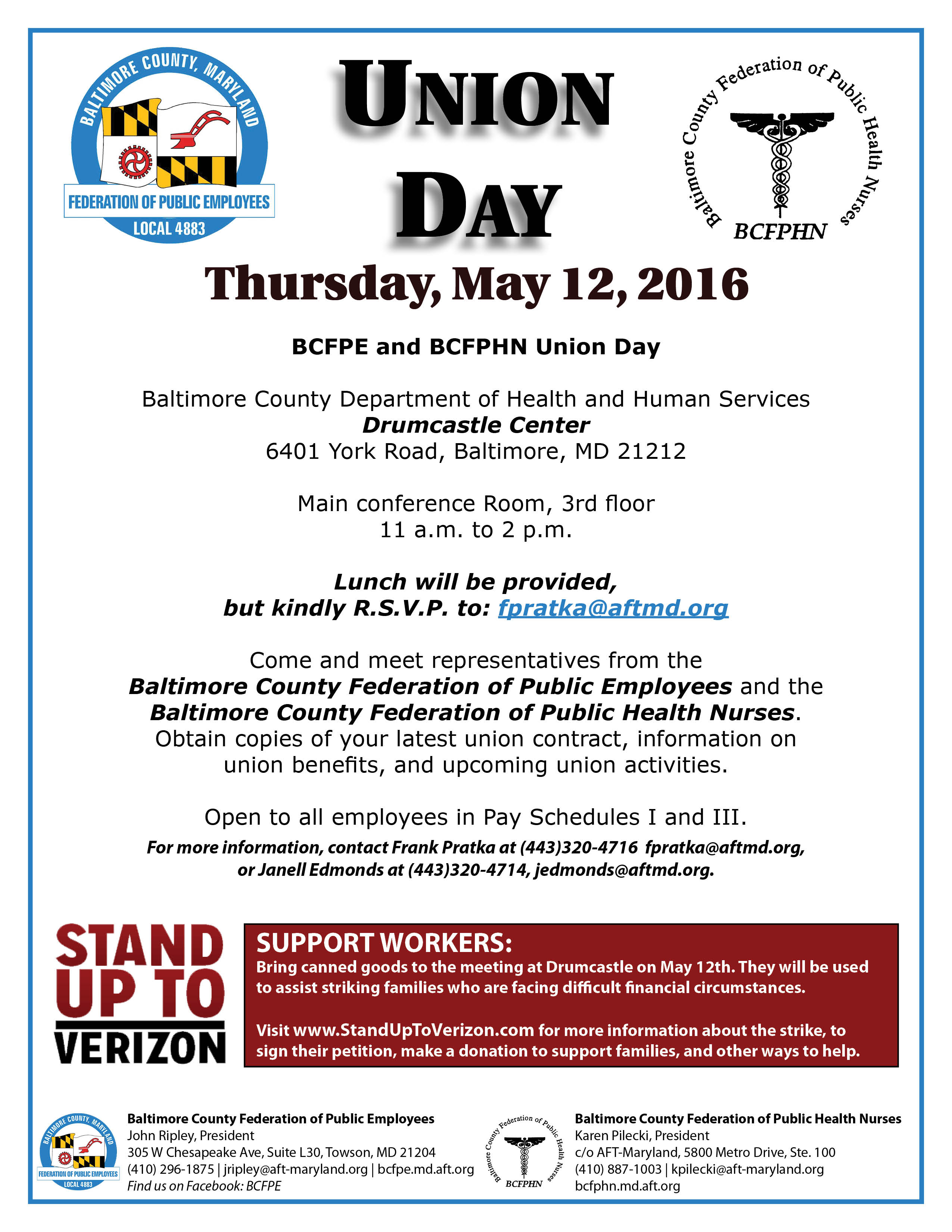 Unions are only as strong as the solidarity they create. They often find their strength in numbers, as they connect different people with different interest to one goal. To that end, members & staff of AFT-Maryland took to the picket line to support their sisters and brothers in labor from the Communication Workers Association (CWA).
