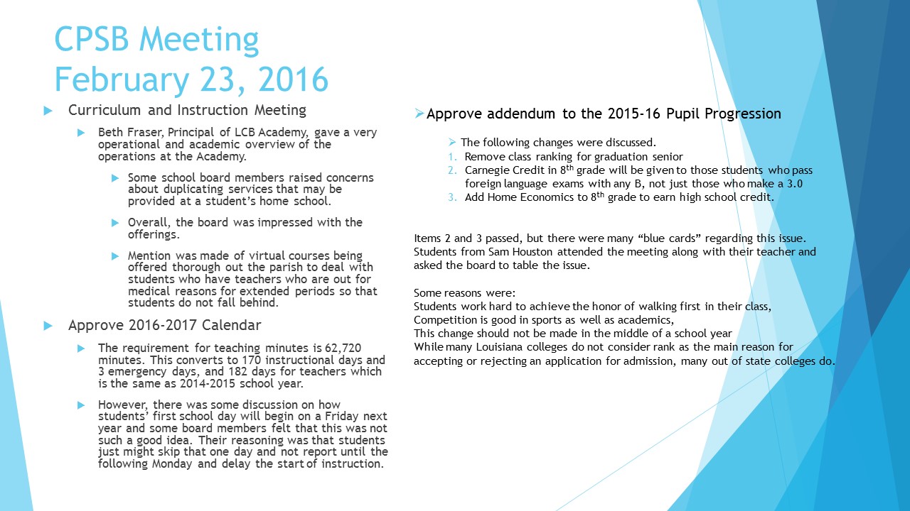 CPSB Board Meeting Info Part II