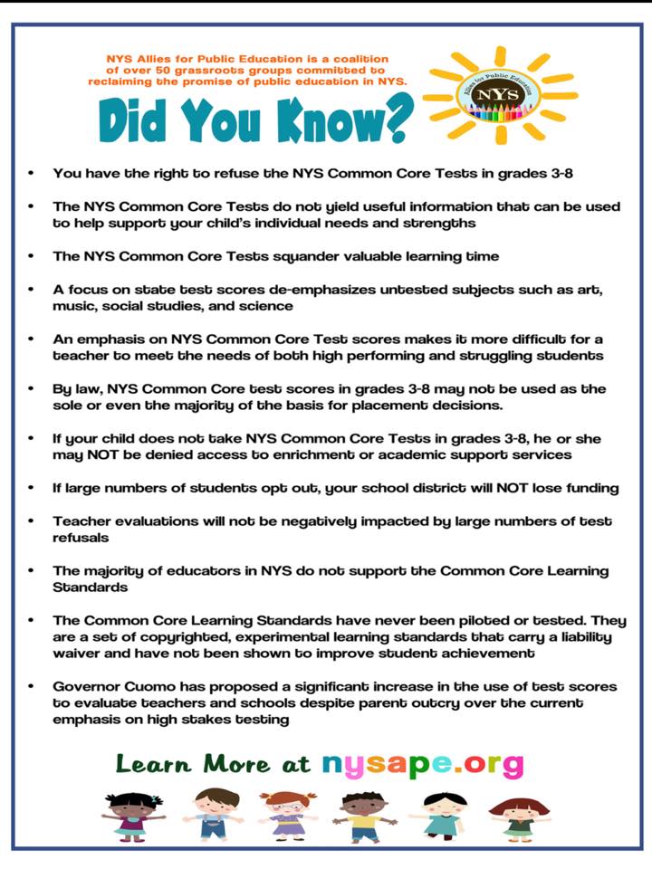 Padres en Nueva York se unen a un movimiento nacional que rechaza los exámenes estandarizados bajo el nuevo estándar académico conocido como Common Core.