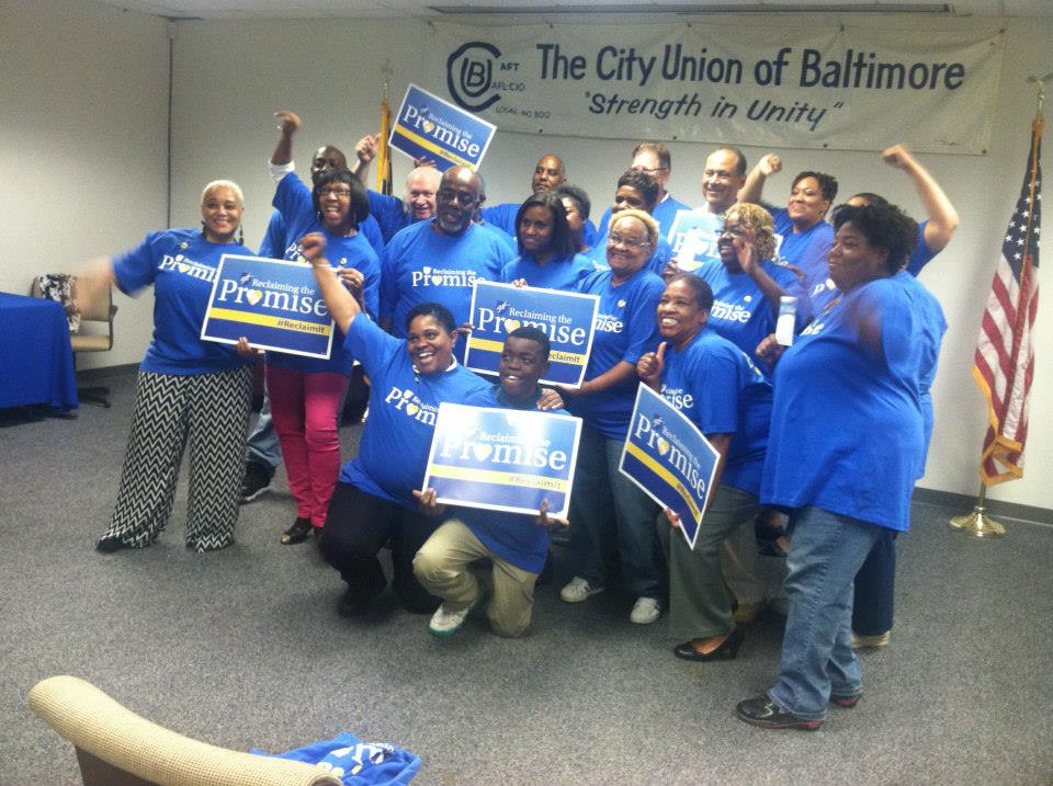 The City Union of Baltimore launched its Reclaiming the Promise program on May 21. CUB leaders and activists signed on to the initiative during a stewards meeting and took hundreds of pledge cards back to their workplaces for colleagues to sign.